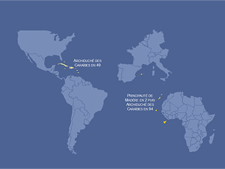 En l'an 2, le premier royaume qui voit le jour est une île. La Région est, en effet, constituée de nombreuses îles, ce qui en est l'une de ses caractéristiques, la Westphalie étant associée très fortement à l'océan Atlantique qui sépare la Région en deux blocs : sa partie européenne très réduite en surface et sa partie américaine, très vaste. Ainsi, c'est la Principauté de Madère qui domine les îles régionales tandis que le reste de la région est encore constitué de peuplades disparates. En 49, les îles américaines quittent le giron de Madère et se constituent en un Archiduché des Caraïbes, lequel abosrbe Madère, en 94.